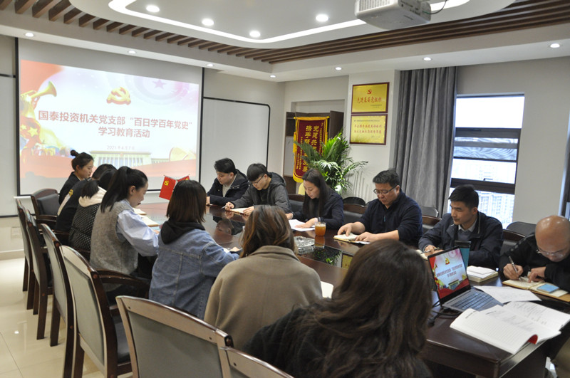 為深入學習習近平總書記在黨史學習教育動員大會上的重要講話精神,貫徹落實集團公司黨委關于開展“百日學百年黨史”學習教育活動的工作部署要求,4月7日下午,國泰投資機關黨支部開展“百日學百年黨史”專題學習教育活動。活動由機關支部書記丁秀主持,支部全體黨員、積極分子參加會議。